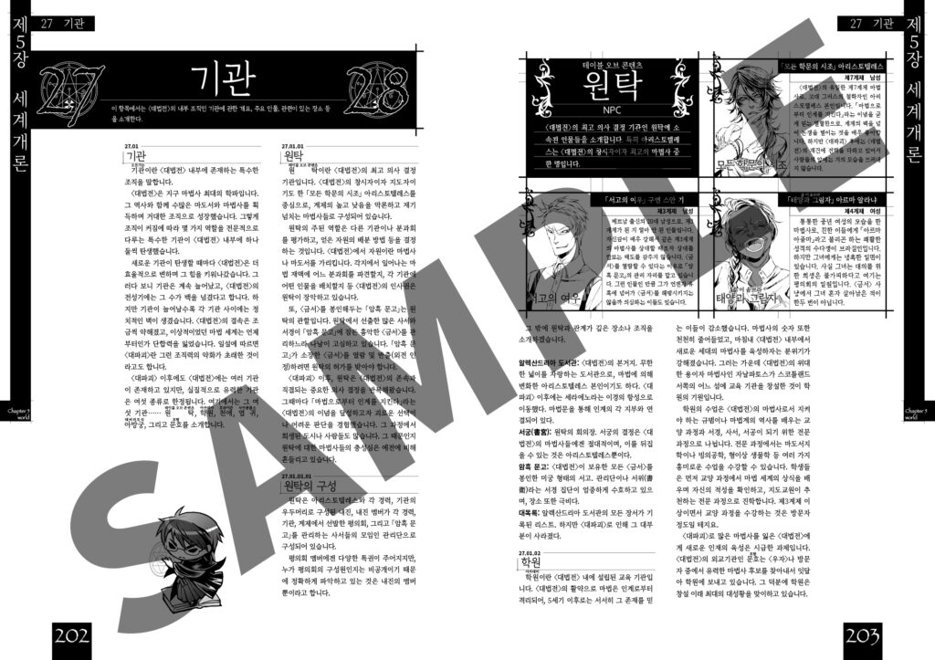 이 장에서는 『마기카로기아』의 세계와 등장 NPC를 소개합니다. 시나리오 제작의 힌트를 얻고 싶을 때나 마기카로기아를 더 자세히 알고 싶을 때 활용하시기 바랍니다.