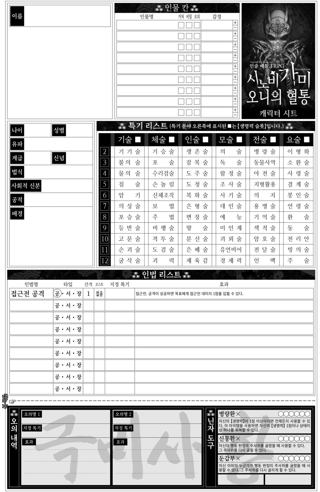캐릭터 시트 – 오니의 혈통