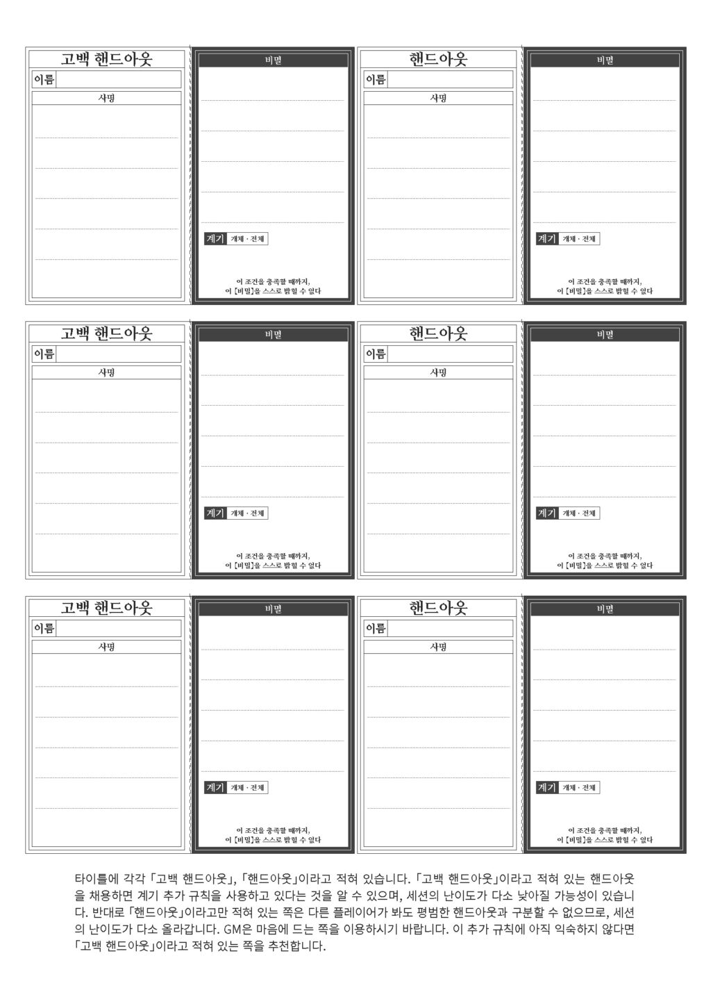 고백 핸드아웃(하구레모노 유파북)