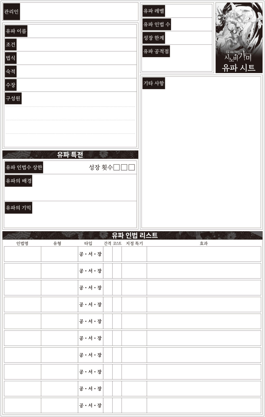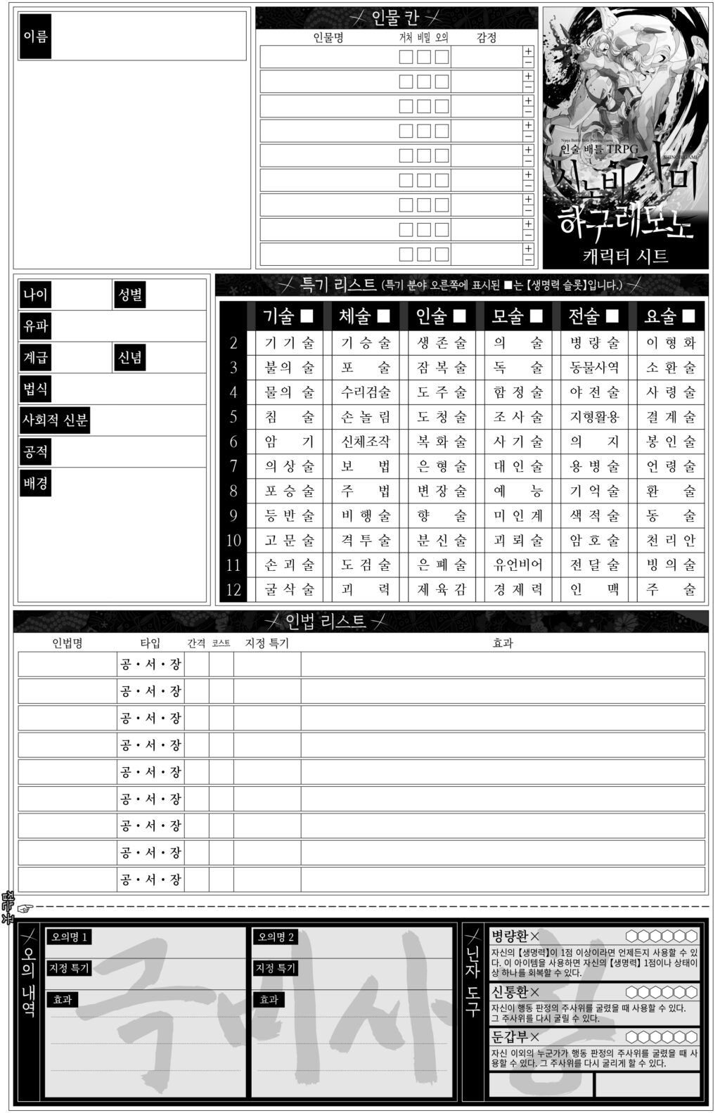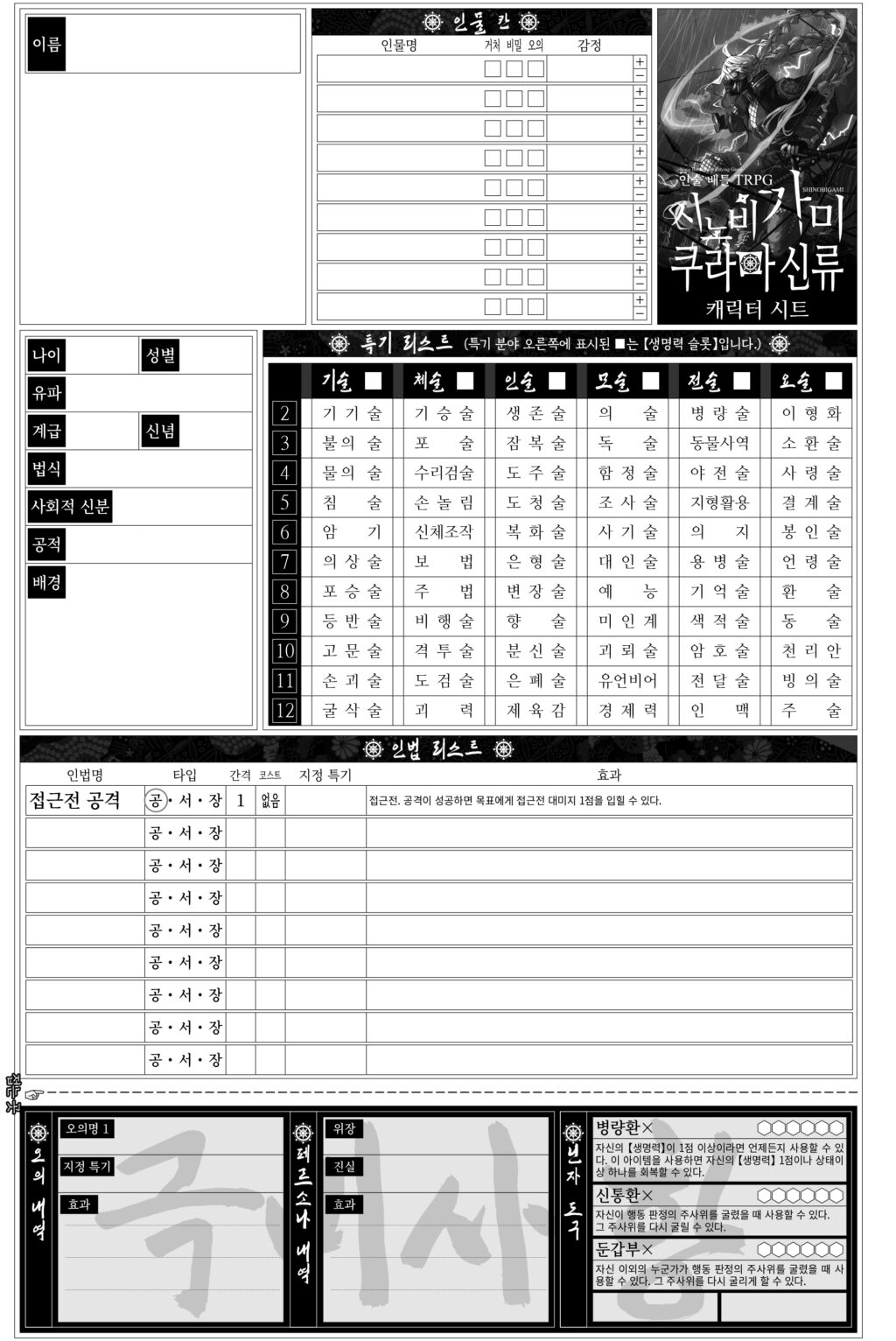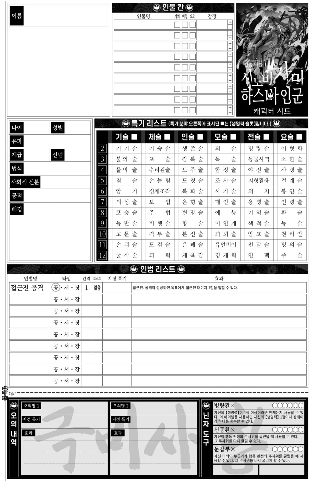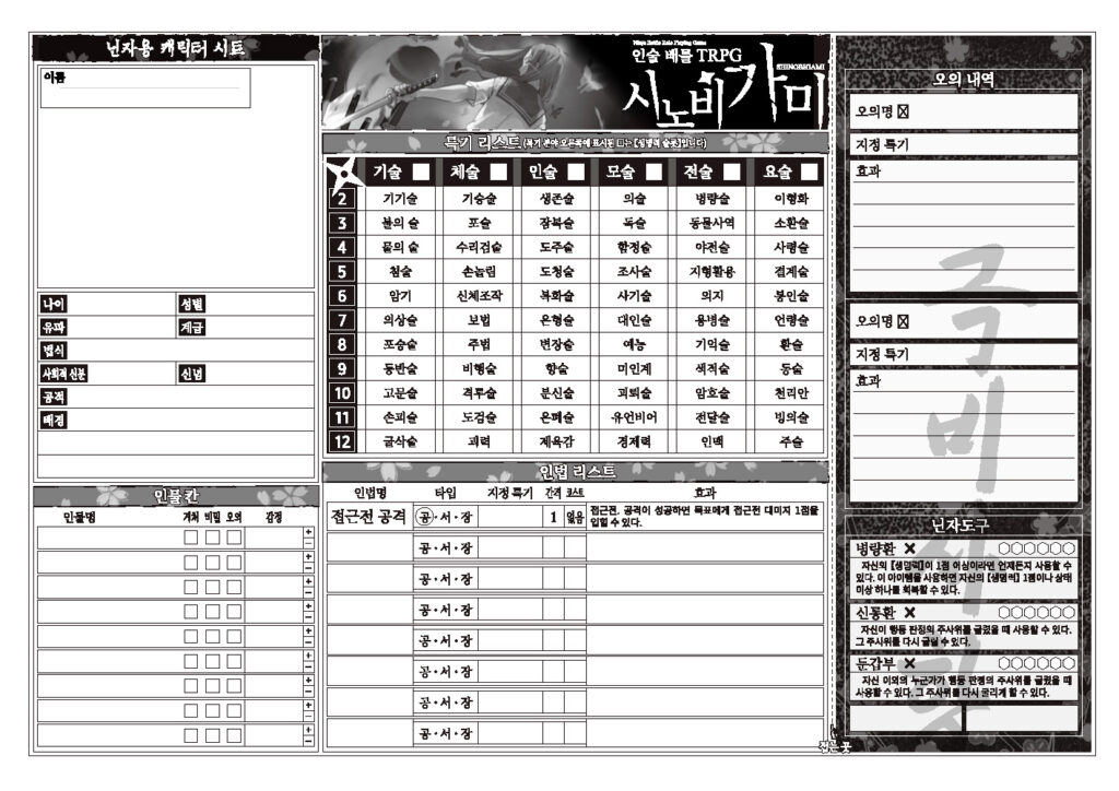 닌자 캐릭터 시트
