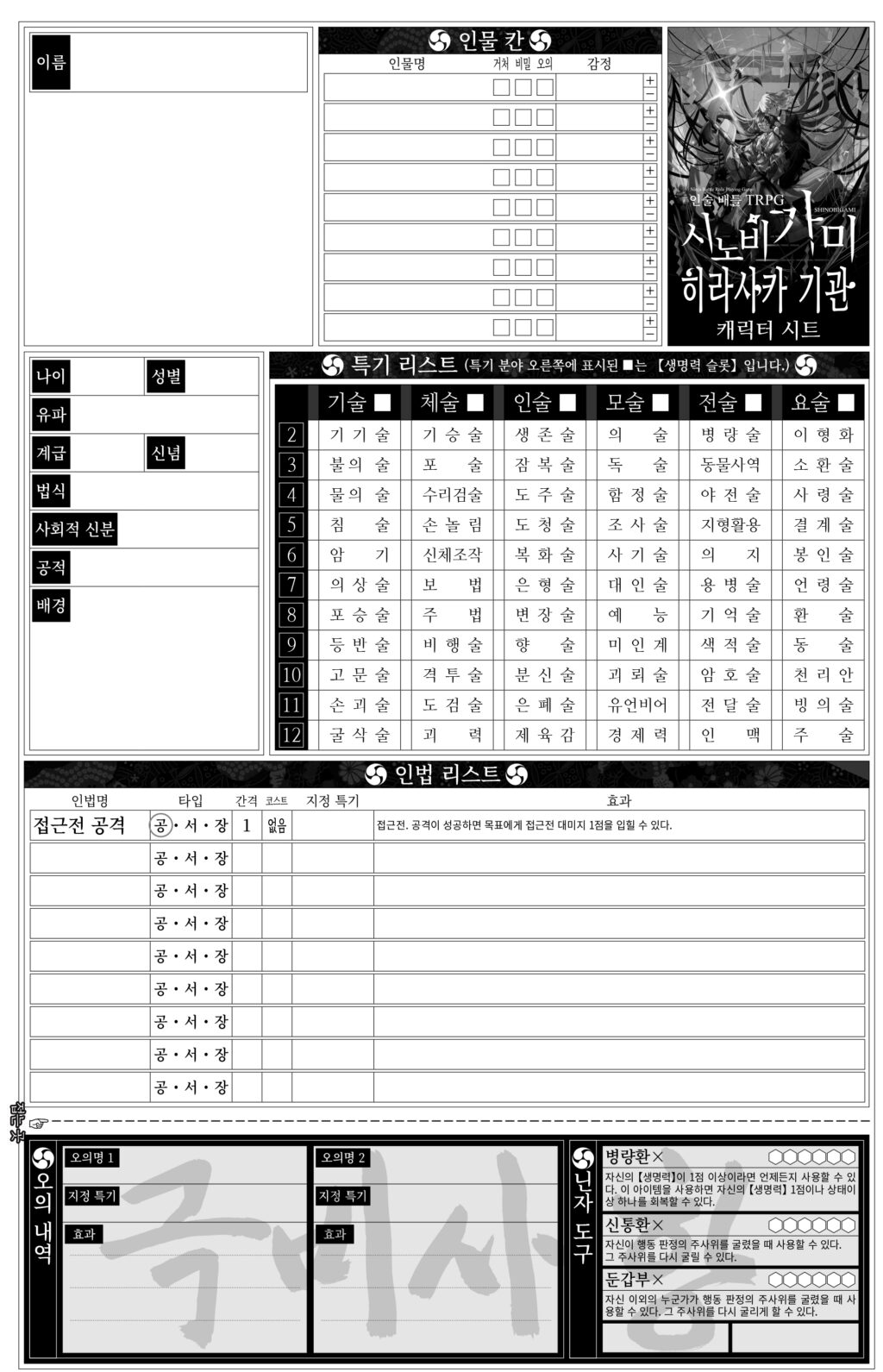 시노비가미 기본 룰북