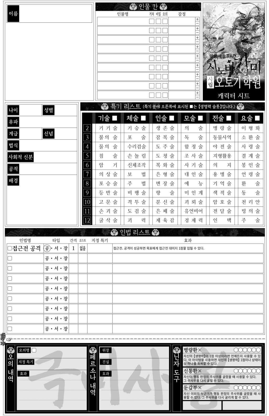 캐릭터 시트 – 사립 오토기 학원
